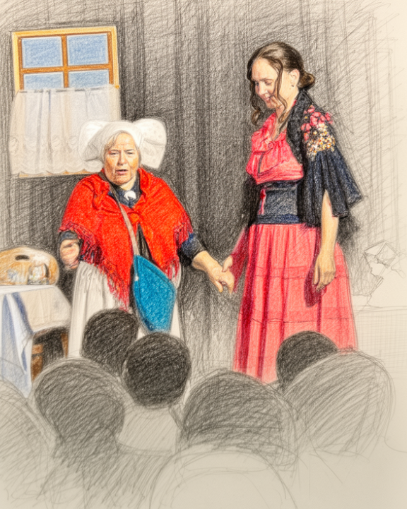 Dále zde již nebudeme uvádět přepis jednotlivých charakterů, které Dr. Topinka ve svém dopise uvádí. Zaměříme se pouze na roli babičky a to ve zkrácené redakční úpravě. Věříme však, že bude ještě možnost s Dr. Topinkou na tomto tématu spolupracovat a uskutečnit třeba krátkou a zajímavou besedu před reprízou samotné hry.